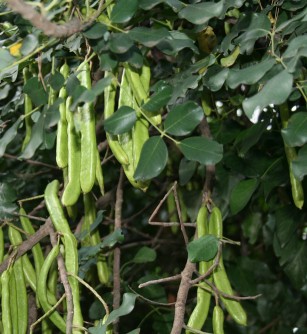 Es un árbol procedente de Siria y Palestina y se ha extendido por el Mediterráneo meridional y occidental, hasta las costas de Italia y España. Se utilizan las semillas y la pulpa del mesocarpio de la vaina del algarrobo.