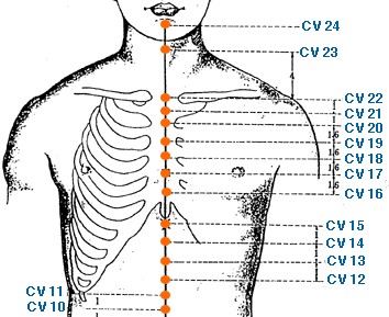Punto 12 de vaso concepción (CV 12). Si las rabietas están desencadenadas por la frustración, enséñale a presionar este punto, mientras repite lentamente el nombre que describe este punto: Centro de Poder.